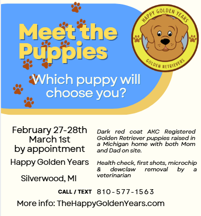Come meet the puppies in Silverwood, Michigan! The event will be on-site by appointment only at the following link: